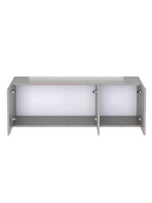 Антресоль для шкафа имеет три дверцы, открывающиеся в стороны. За ними расположено место для хранения вещей (одежды, постельного белья или принадлежностей). Все дверцы открываются с помощью механизма от нажатия (push to open). Дверцы с доводчиками, оборудованы соответствующими накладными и полунакладными петлями.
