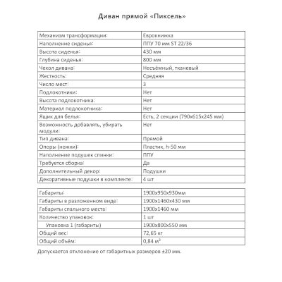 Диван Пиксель (Аквилон) продается в интернет-магазине mebel-online-ulan-ude.ru по цене 30 299 руб. Есть доставка по Улан-Удэ и Республике Бурятия. Возможность подъема на этаж и сборки уточняйте у менеджера по телефону 8(800)505-27-11.