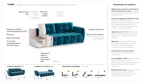 Угловой диван Треви-3 (Империал) продается в интернет-магазине mebel-online-ulan-ude.ru по цене 108 210 руб. Есть доставка по Улан-Удэ и Республике Бурятия. Возможность подъема на этаж и сборки уточняйте у менеджера по телефону 8(800)505-27-11.